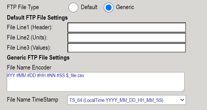 The file name itself is generated using the YuTGT. Following two settings are defined under "**Generic FTP File Settings**"