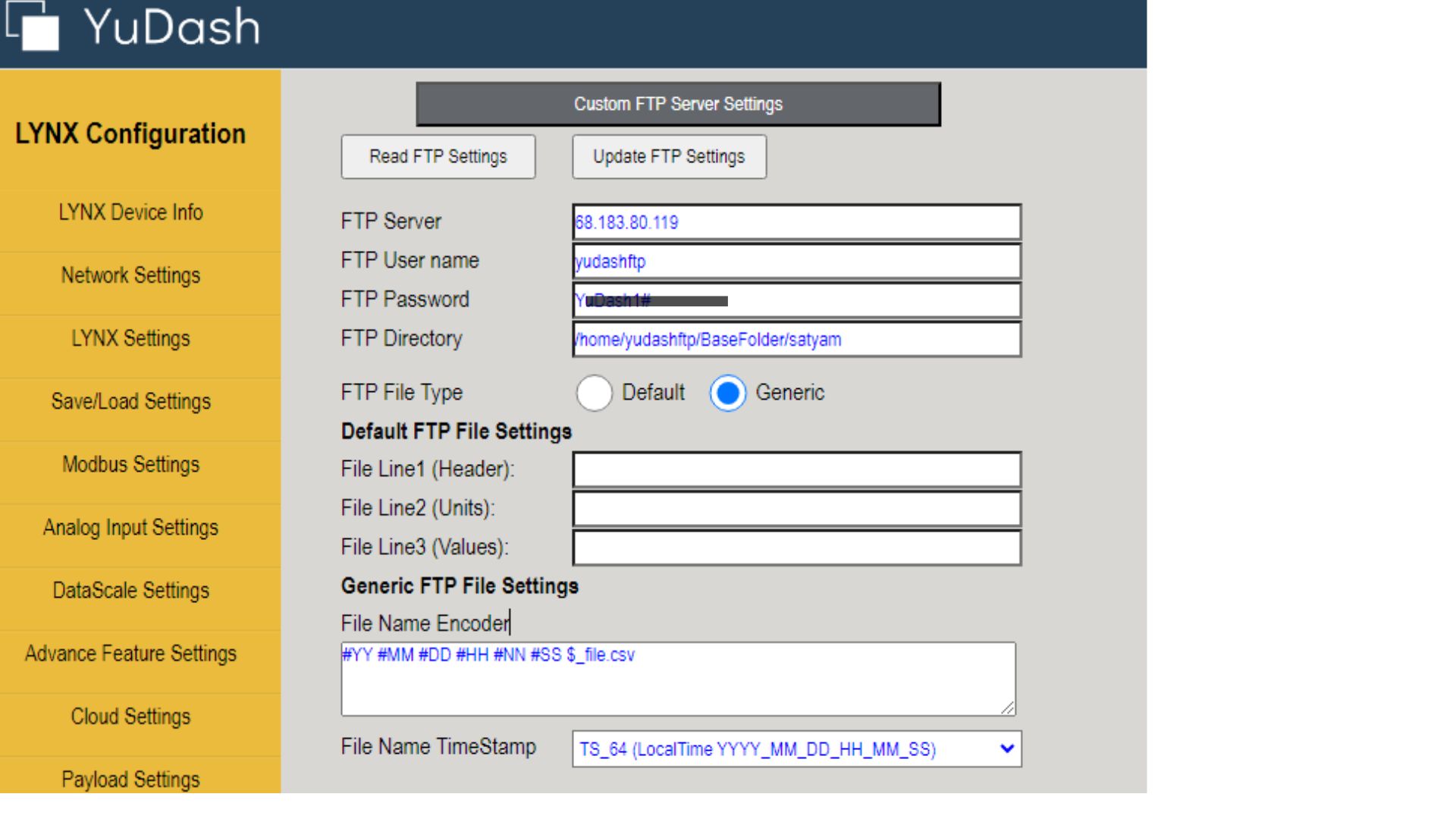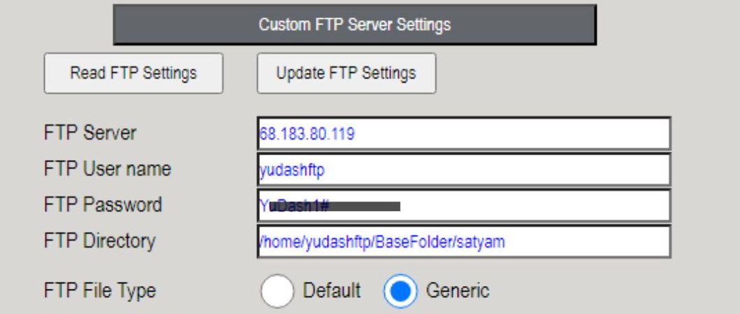 There are two ways to create FTP files in the YuDash device. This is categorized by radio box **FTP File Type**".