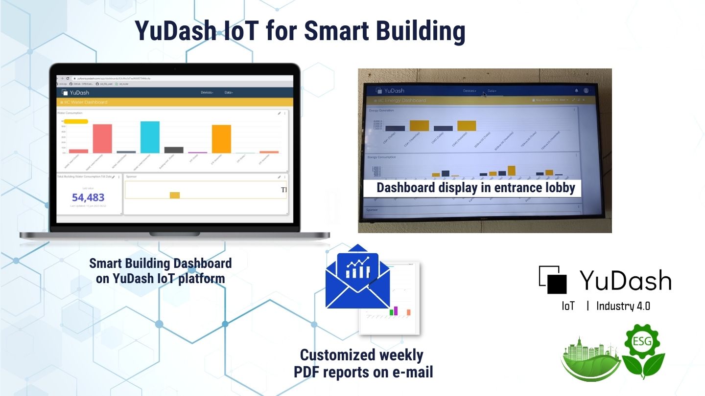 **Smart Building dashboard with real-time information is available on laptop and mobile app. The dynamic dashboard has also been displayed on a large TV at the building entrance lobby. Customized email reports in printable PDF format are being sent on weekly basis to the concerned officials.**