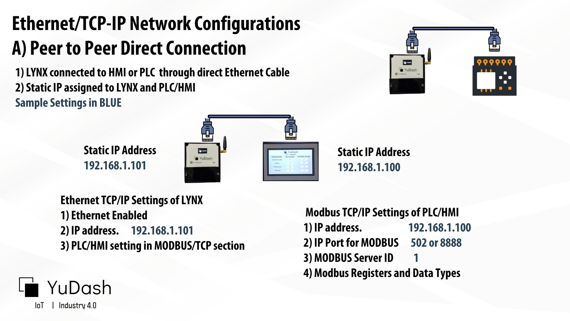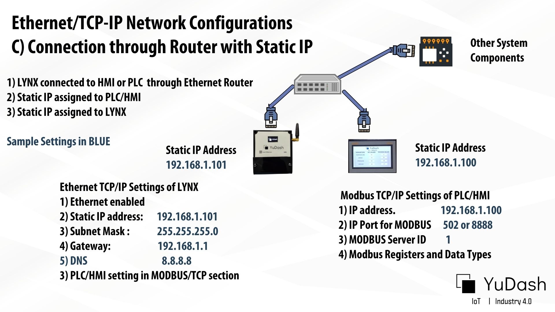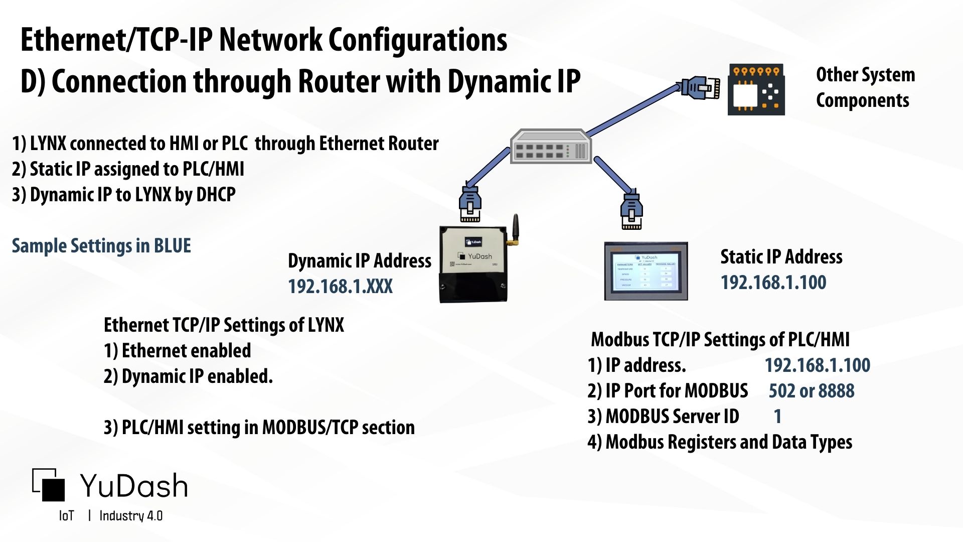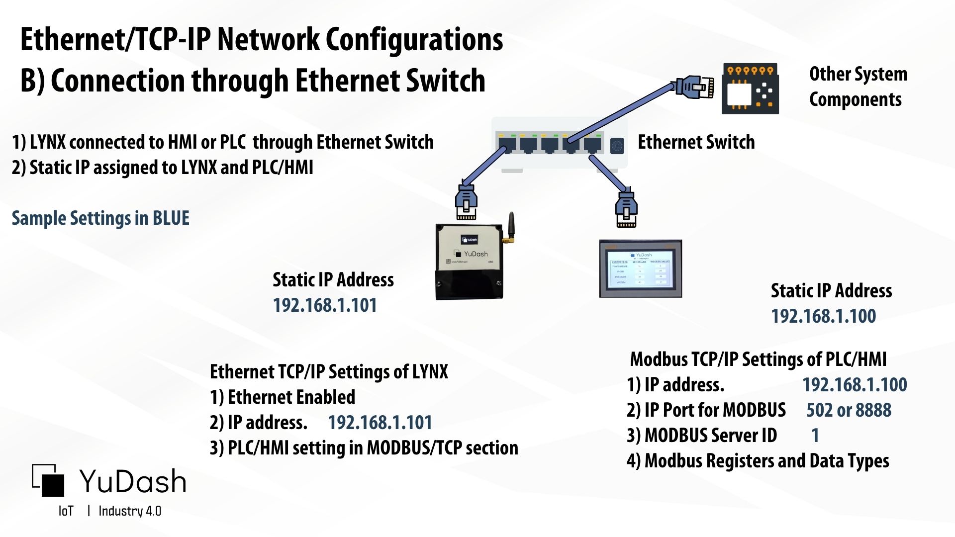 YuDash LYNX supports Modbus TCP/IP to read various PLC/HMIs through ethernet. In principle, following are the pre-requesites for using Modbus TCP/IP:
