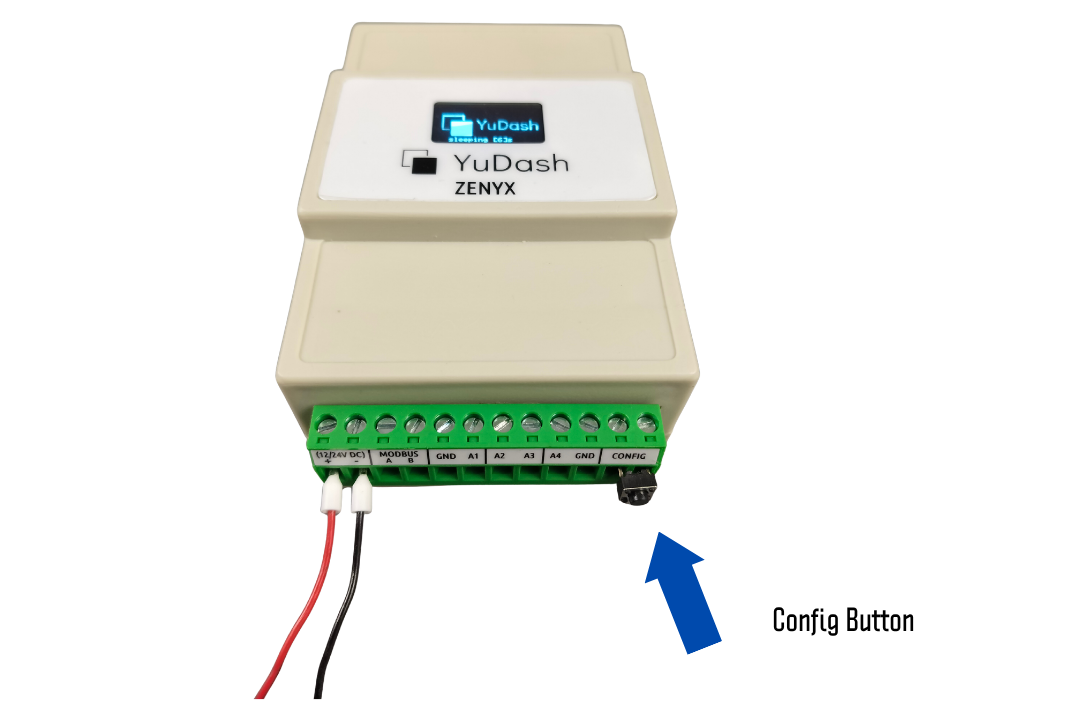 During the countdown, short press the Config button (present on top left side) to start the configuration server.
